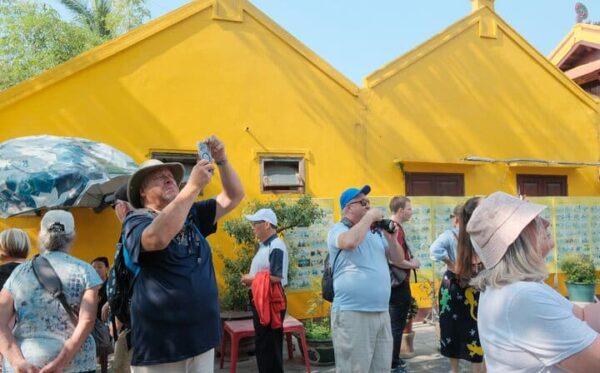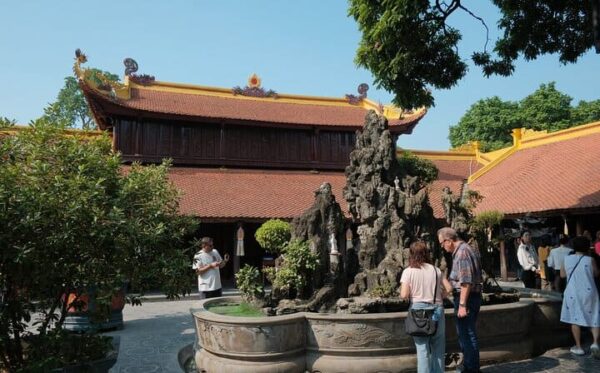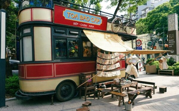 Our first stop is the ancient Tran Quoc Pagoda, a peaceful oasis on a small island. We’ll then cycle to Phu Tay Ho, a sacred temple with a rich history. Next, we’ll visit the West Lake Flower Valley, where you can take beautiful pictures. The highlight of our tour is a stop at Dao Ngoc, where you can explore and take photos with a beautiful retro tram car.