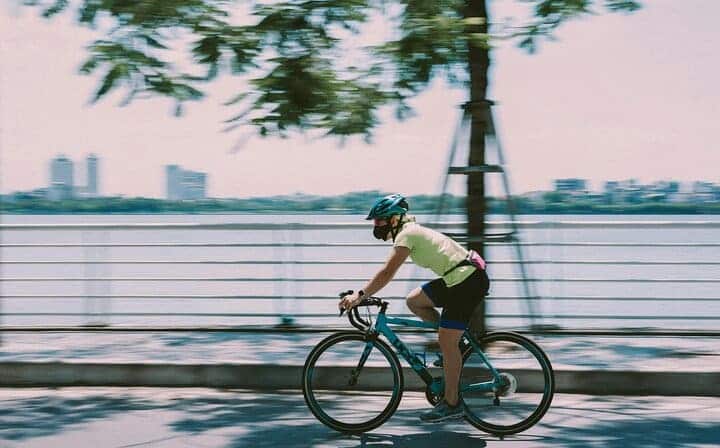 Use of a bicycle and helmet