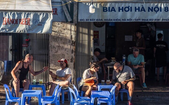 The journey continues to the lively Trinh Cong Son Walking Street, perfect for a short stroll. We will then find a charming spot by the lake to watch the breathtaking sunset while sipping on some tea or coffee. To wrap up the tour, we’ll toast to a great day with a glass of locafresh beer, a perfect end to your Hanoi exploration.